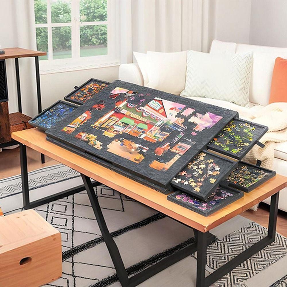 Tấm lưu trữ xếp hình HEALMEYOU, Tấm xếp hình nghiêng 1000 mảnh di động, Thảm xếp hình 2 trong 1 với 6 ngăn kéo Bảo quản xếp hình 1000 mảnh Sử dụng tại nhà