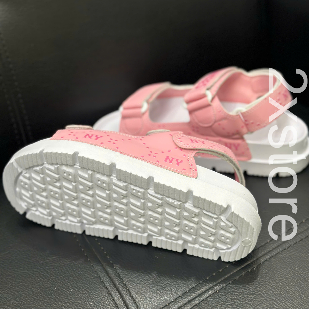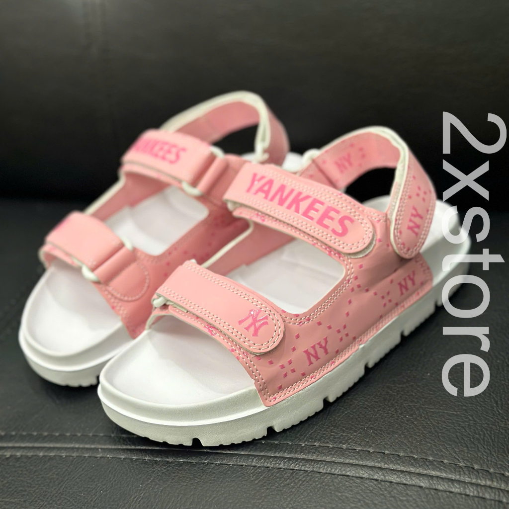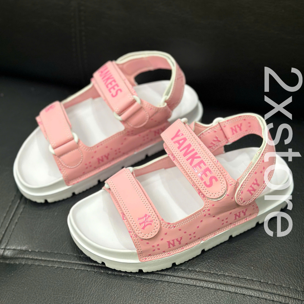 Dép sandal MLB yankee màu hồng, sandal quai dán chất đẹp Fullbox