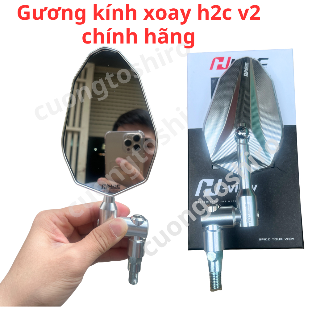 Gương Chiếu Hậu H2C V1 v2 v5, Kính H2C Xoay 360 độ, Chất liệu nhôm phay CNC, mặt gương trắng quan sát rất rộng