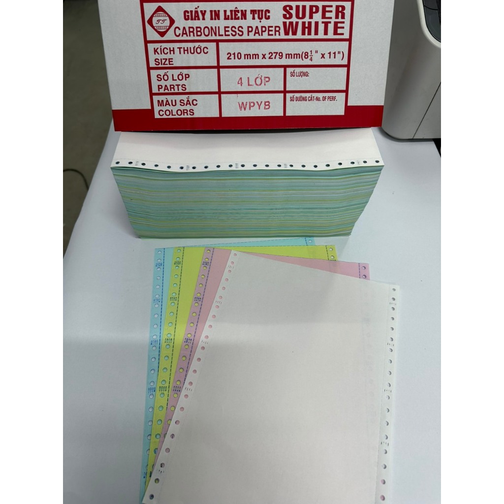 Giấy Vi Tính In Liên Tục 210 x 279 1 Lớp Carbonless Thu Trang