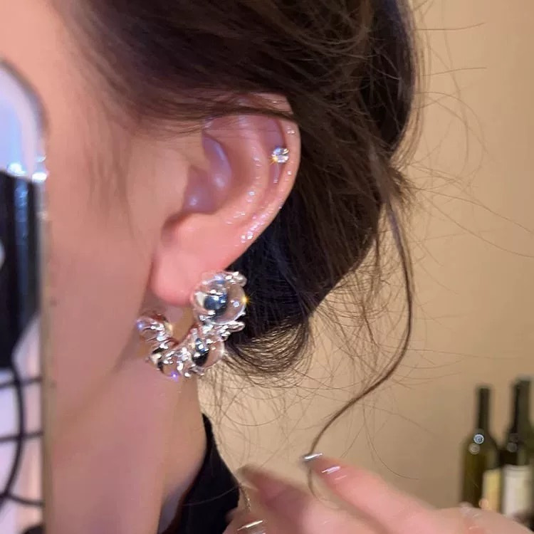 Bông tai hạt pha lê trong suốt bằng đá Phong cách mới Ánh sáng sang trọng Thiết kế thích hợp Bông tai bông tai