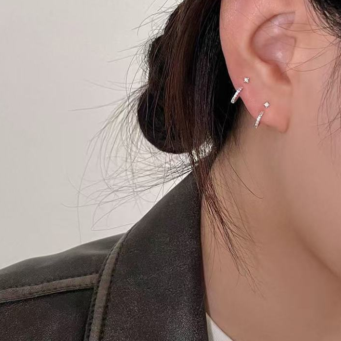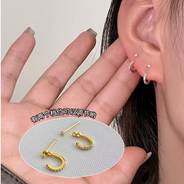 Sterl Sterling Bạc Zircon Bông Tai Nữ Niche Lưng Treo Thiết Kế Bông Tai Cao Cấp Phong Cách Mới Bông Tai Kim Cương Bạc Bông Tai Bông Tai Kim