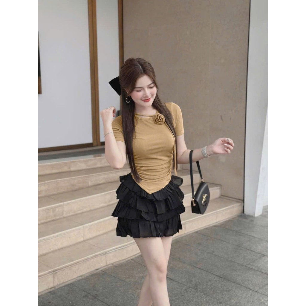 Set áo đính hoa hồng kèm chân váy voan tơ 4 tầng, xinh xắn và lạnh lẽo. "Kim Hoa Store"