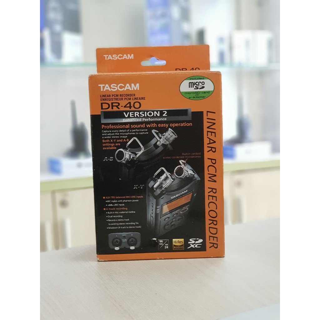 Máy ghi âm Tascam DR-40X, mic ghi dual mix (stereo hoặc mono), bảo hành 12 tháng, ghi âm qua thẻ tới 128G | TECHMART