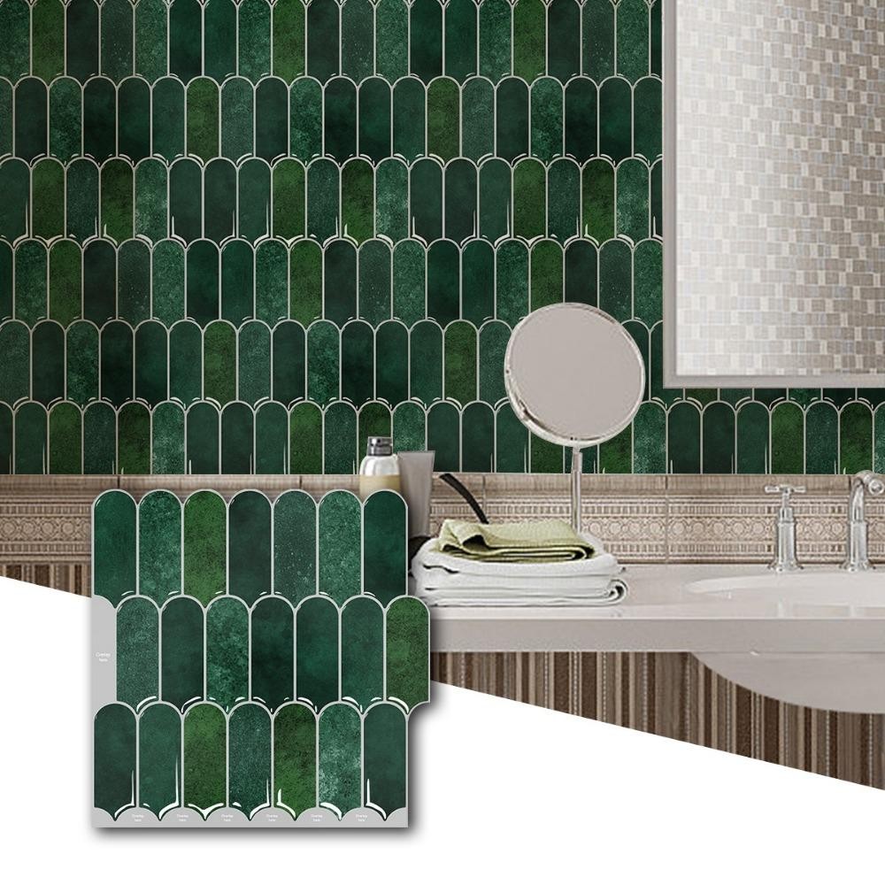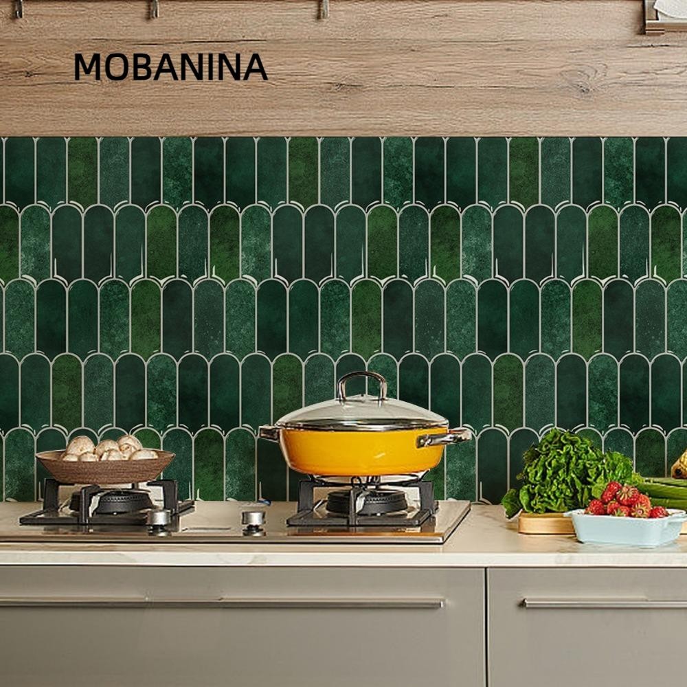 Gạch ốp tường MOBANINA, Nhãn dán tường vảy cá tự dính, Miếng dán tường nhà bếp chống thấm nước PVC chống nấm mốc di động cho phòng tắm nhà bếp