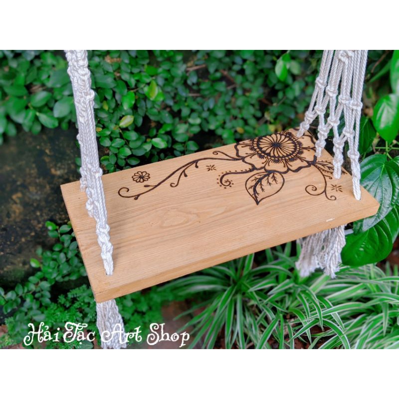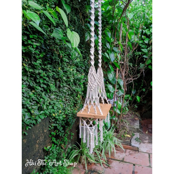 Xích đu gỗ Hải Tặc Art Shop dây tết soắn thủ công màu kem
