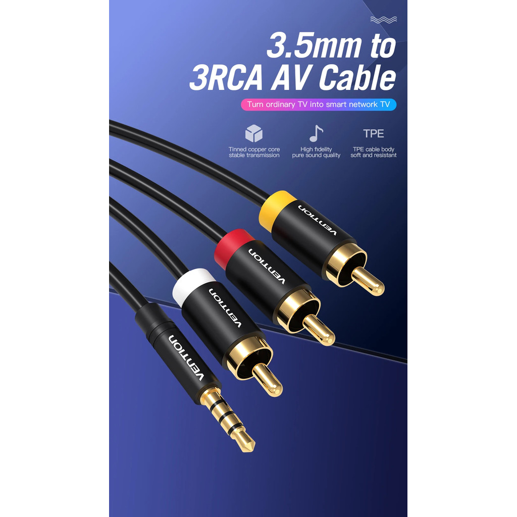 Cáp Vention Jack 3.5mm đến 3RCA Jack 3.5mm Nam đến 3 RCA Nam Bộ chia âm thanh AUX