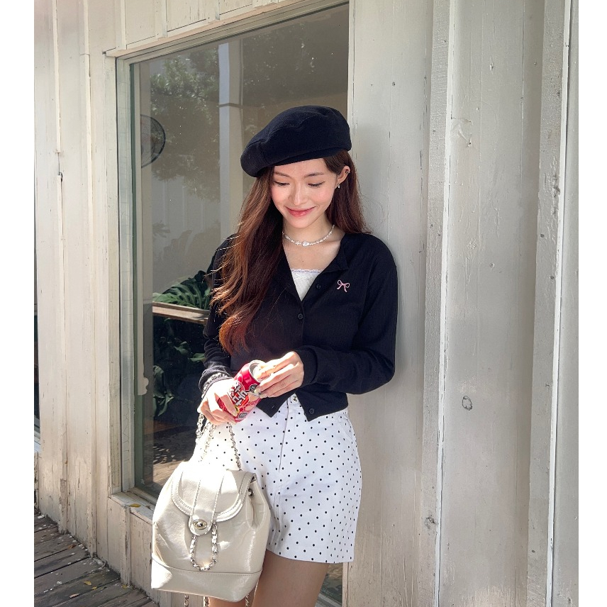 Áo khoác cardigan nữ thun cotton Hàn thêu nơ MONÁ - VIVI