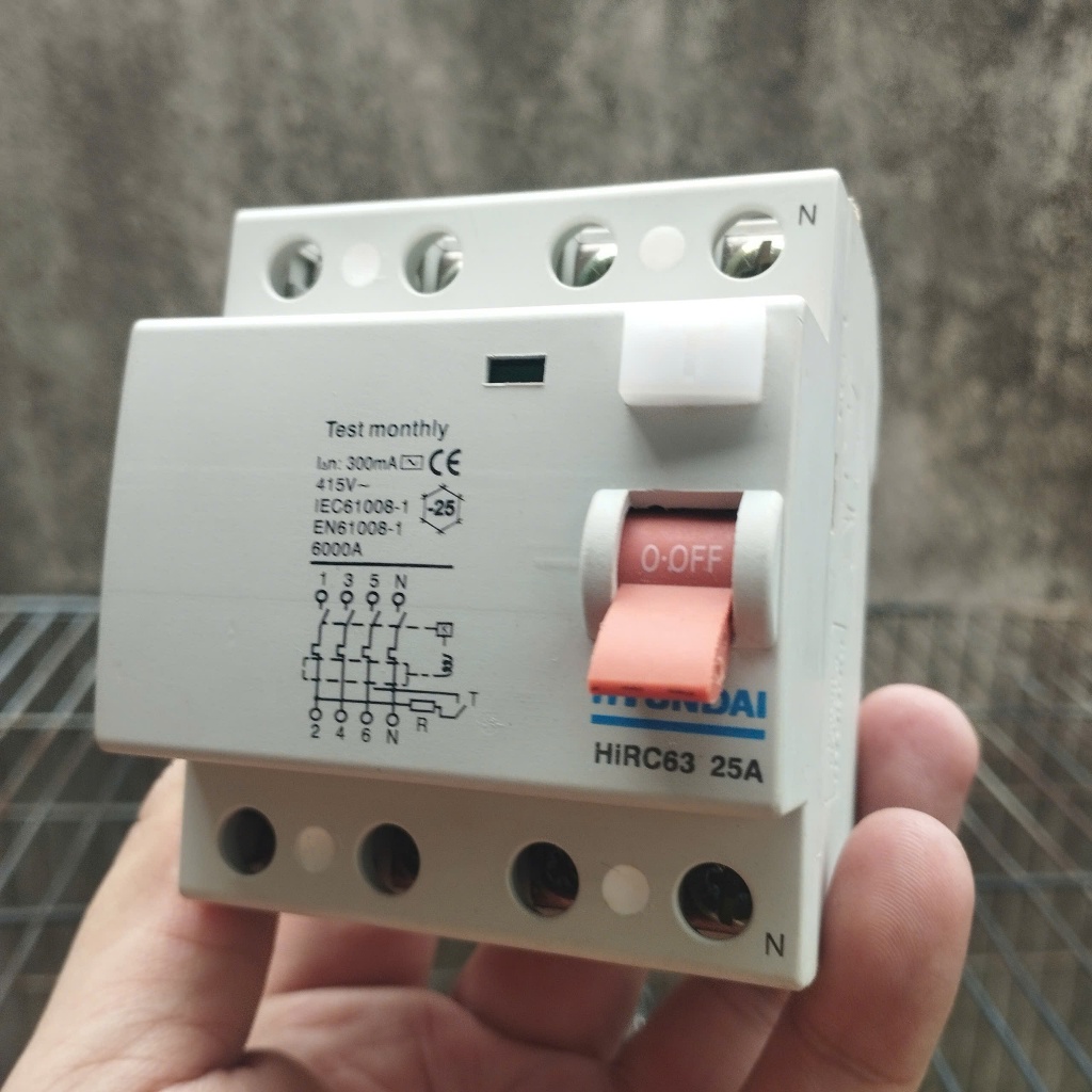 RCCB HYUNDAI HiRC63 25A, 3 pha 4P, CB bảo vệ chống rò, chống giật - Hàng tồn kho thanh lý