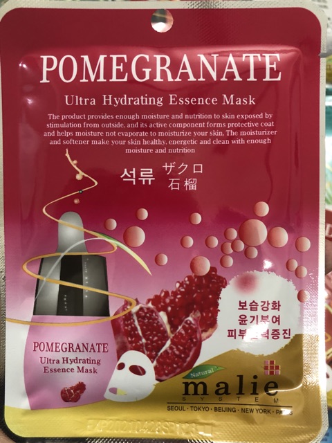 MẶT NẠ GIẤY MALIE CHUẨN HÀN QUỐC (NHÂN SÂM/ LỰU ĐỎ/ MẬT ONG/ RONG BIỂN/ COLAGEN)