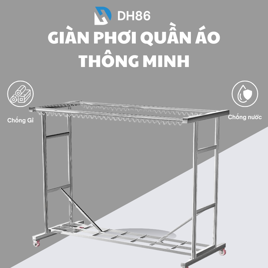 Giàn Phơi Quần Áo Thông Minh Chất Liệu Inox 304 Chịu Lực 300kg Phơi Từ 50 Bộ Quần Áo - DH86