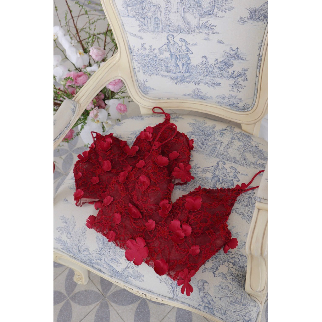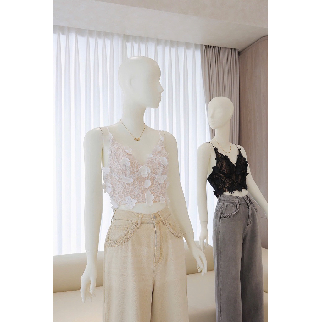 Áo hai dây croptop ren hoa nổi quyến rũ