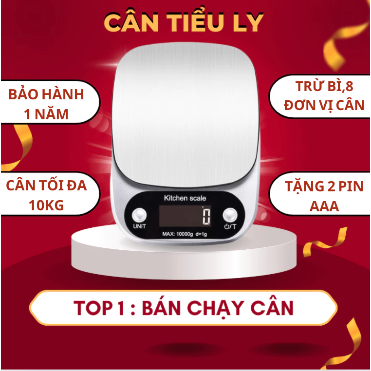 [BẢN CAO CẤP]Cân Điện Tử Nhà Bếp SCALE MAX 10kg, Cân tiểu ly có độ chính xác cao, Cân tiểu ly điện tử TẶNG KÈM 2 PIN