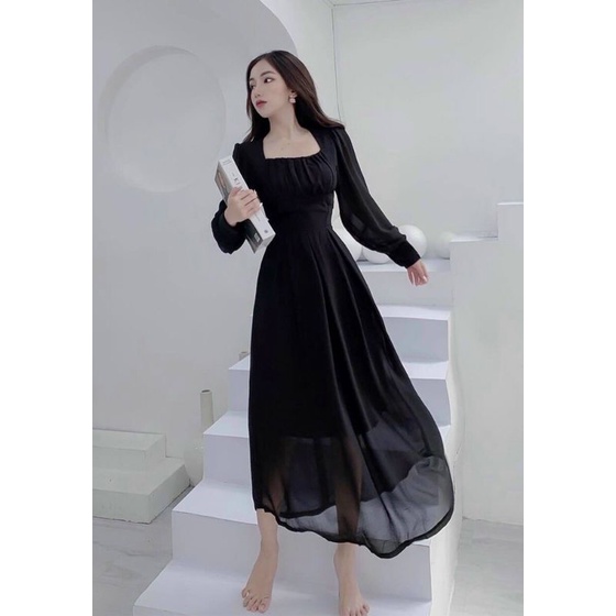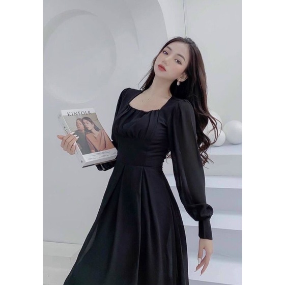 ĐẦM ĐEN CỔ VUÔNG TAY PHỒNG
