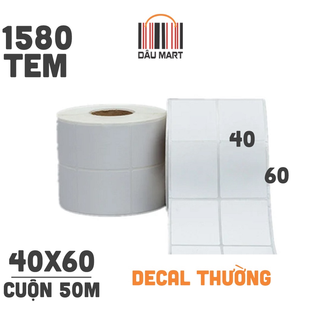 Tem Decal thường 40x60 2 tem 1 hàng cuộn 1.580 dài 50m cho các máy in truyền nhiệt dán tiếp