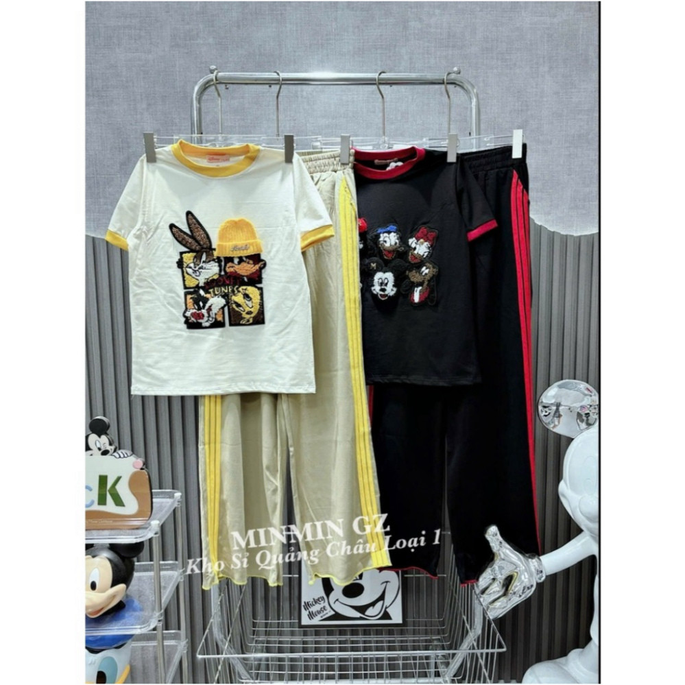 Set Bộ Thun SUÔNG Thêu XÙ HOẠT HÌNH Hàng Quảng Châu cao cấp Chuẩn Loại 1, Set Bộ Suông Freesize hottrend xu hướng sẵn kh