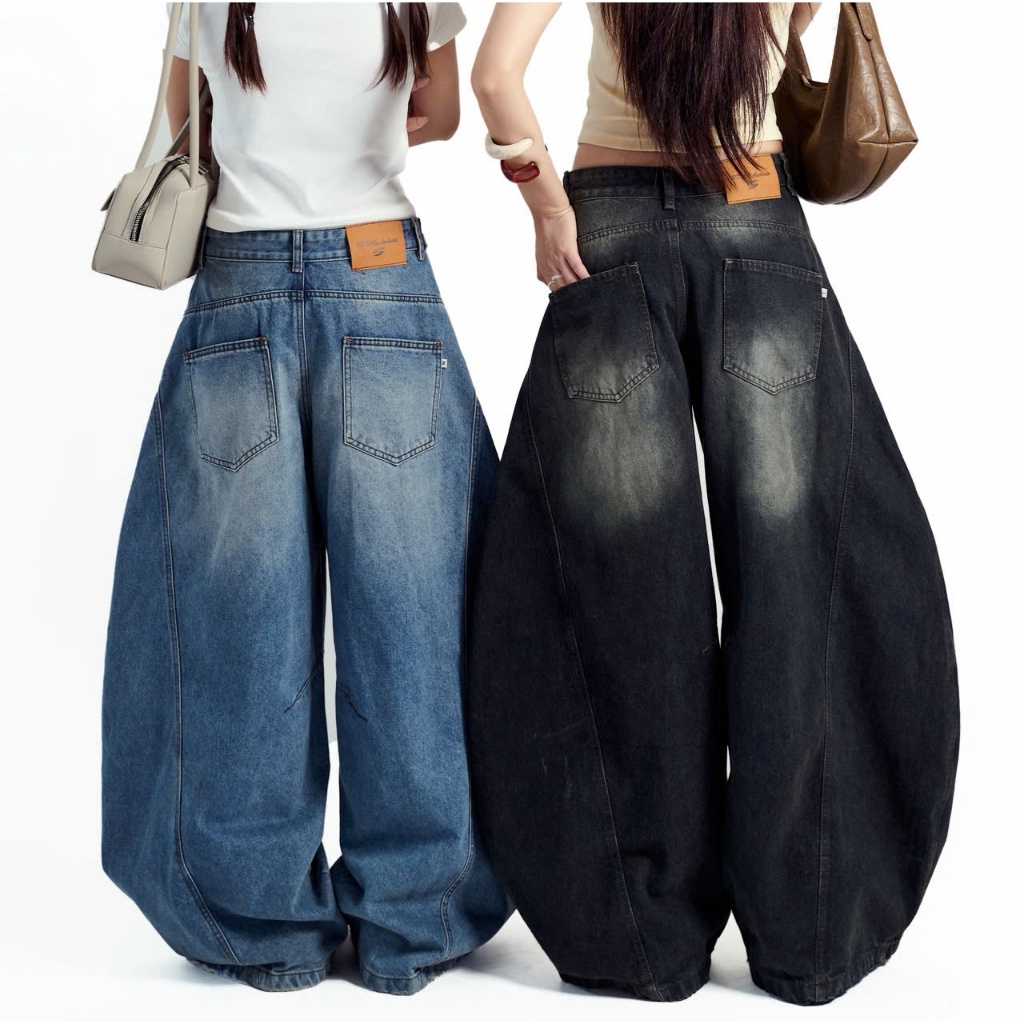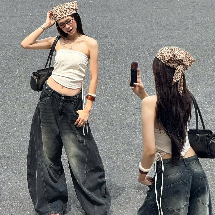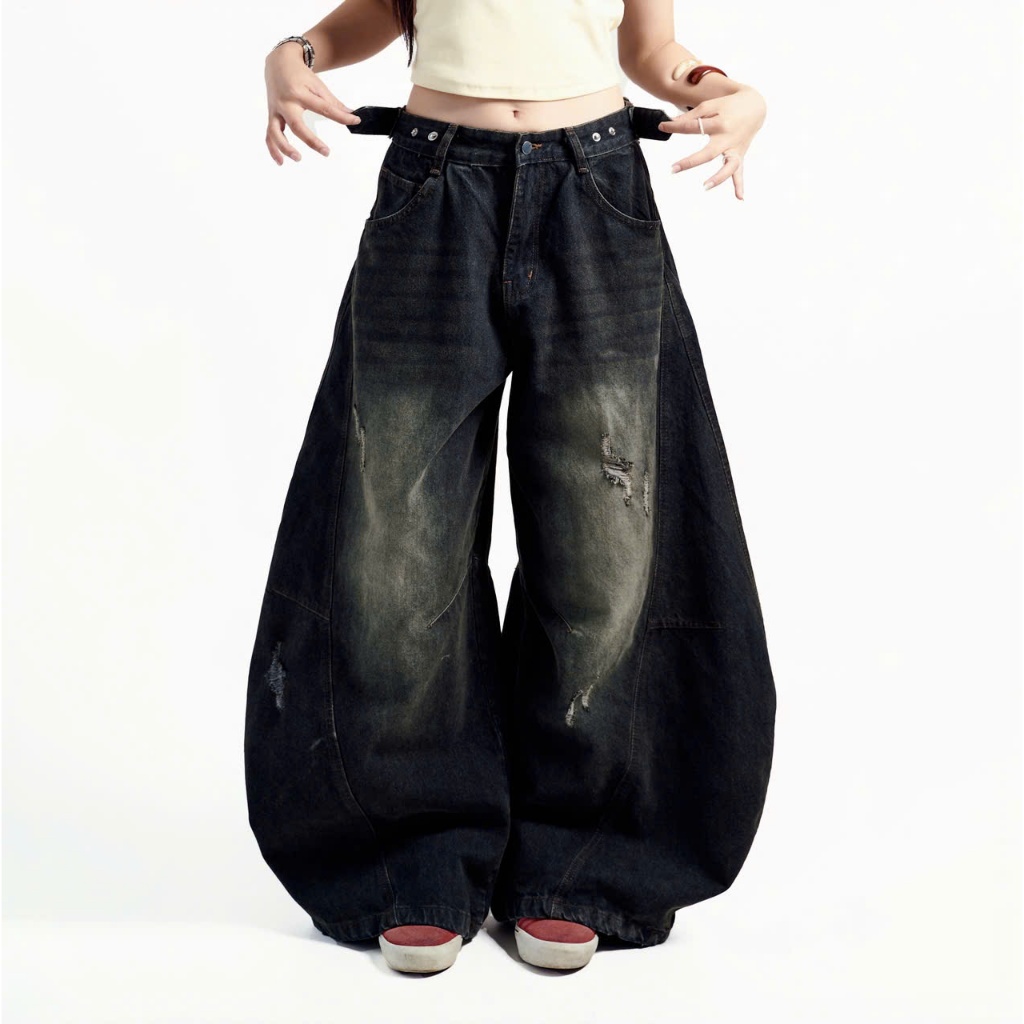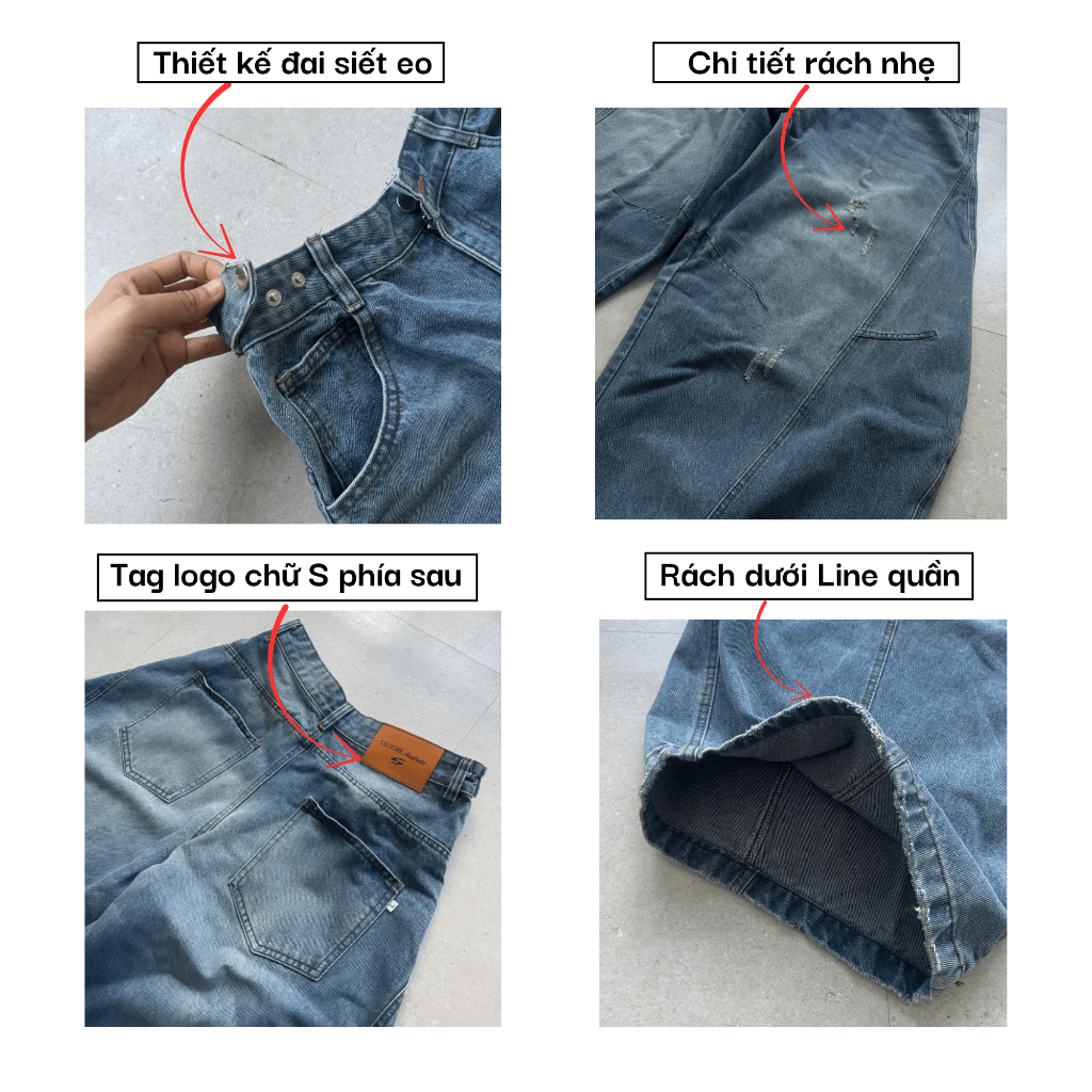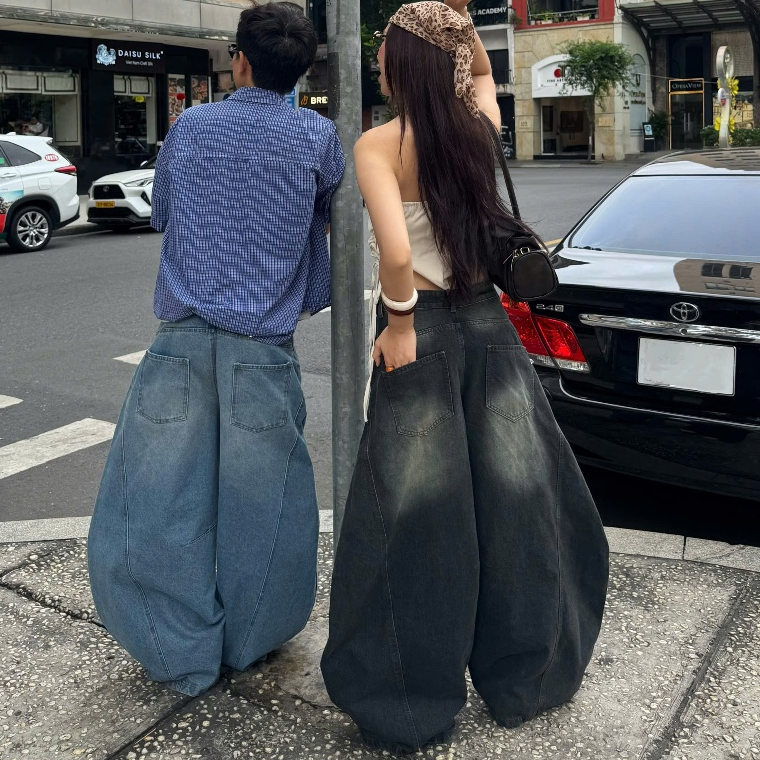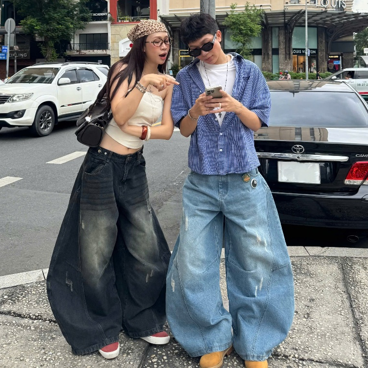 Quần Jeans Dài Ống Cong PREMIUM Form Rộng Wash Tôn Dáng Nam Nữ Thiết Kế Đai Siết Eo | SSSTore.Aesthetic