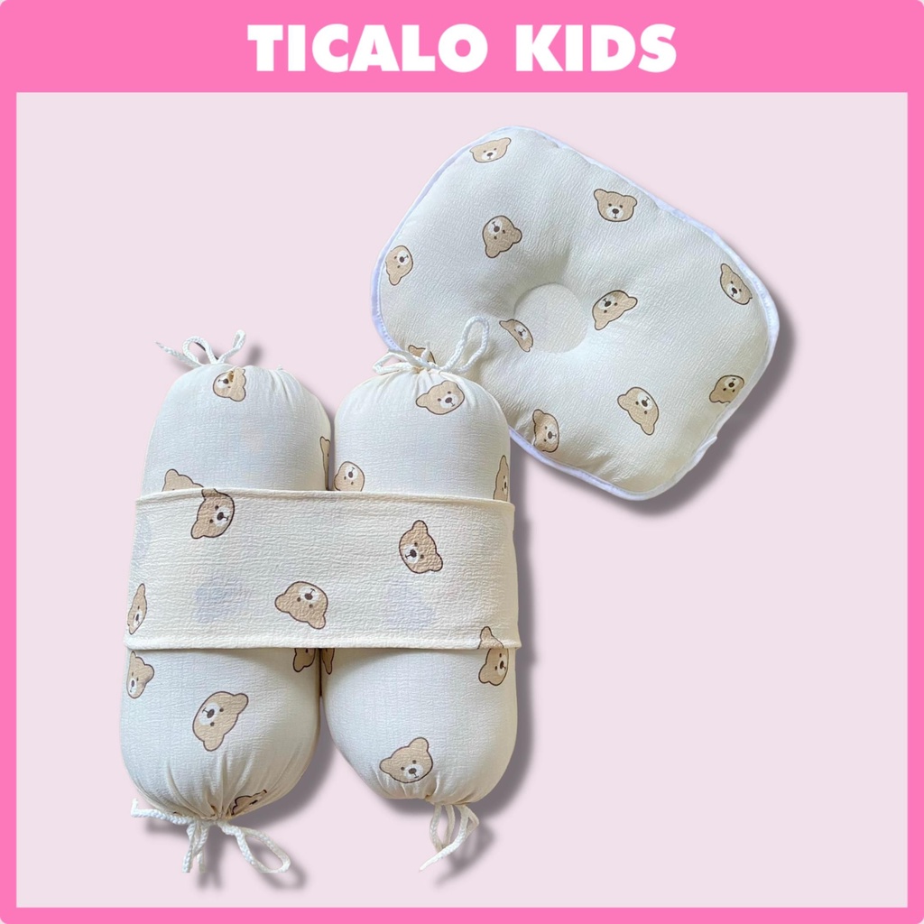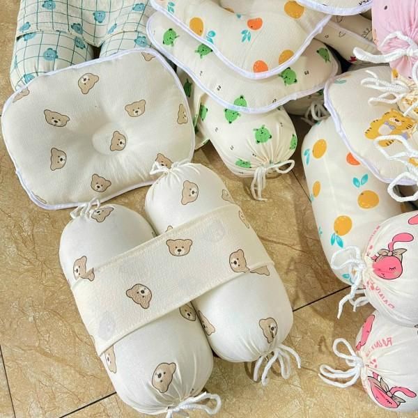 Bộ c h ặ n bông kèm g ố i chất liệu vải xô, hoạ tiết xinh xắn
