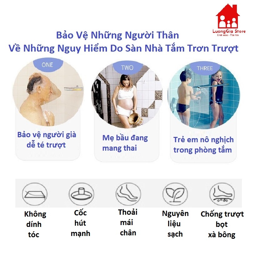 Thảm Chống Trượt Nhà Tắm, Thảm Lót Sàn Nhà Tắm Chống Trơn Chất Liệu Cao Su PVC (36x69cm)