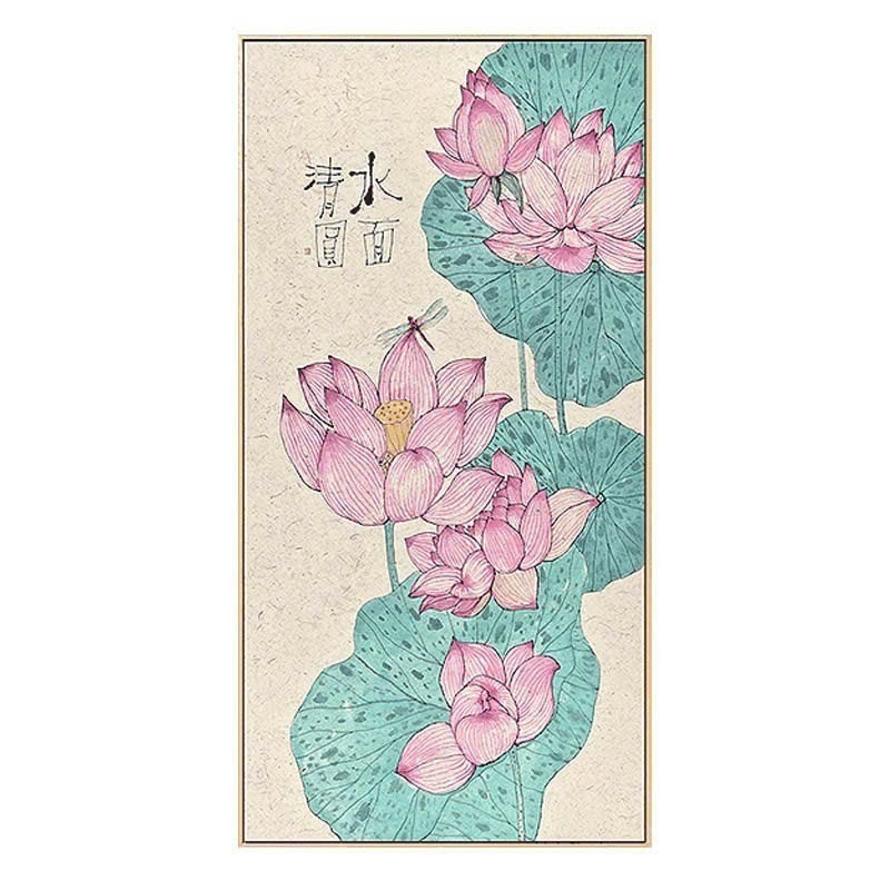 Bộ tứ quý hoa sen, tranh treo phòng thờ, tranh phòng trà, tranh in trên vải canvas, kích thước theo yêu cầu Printek