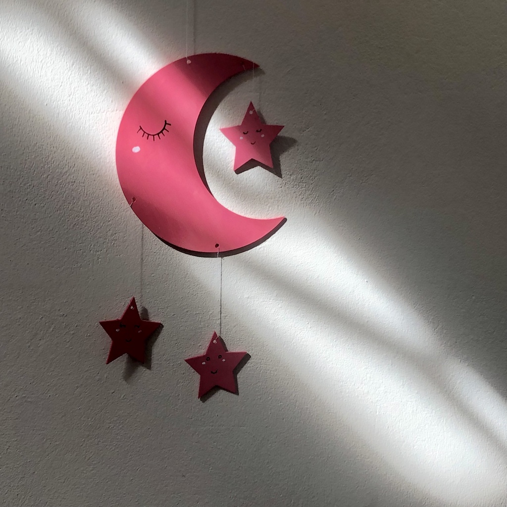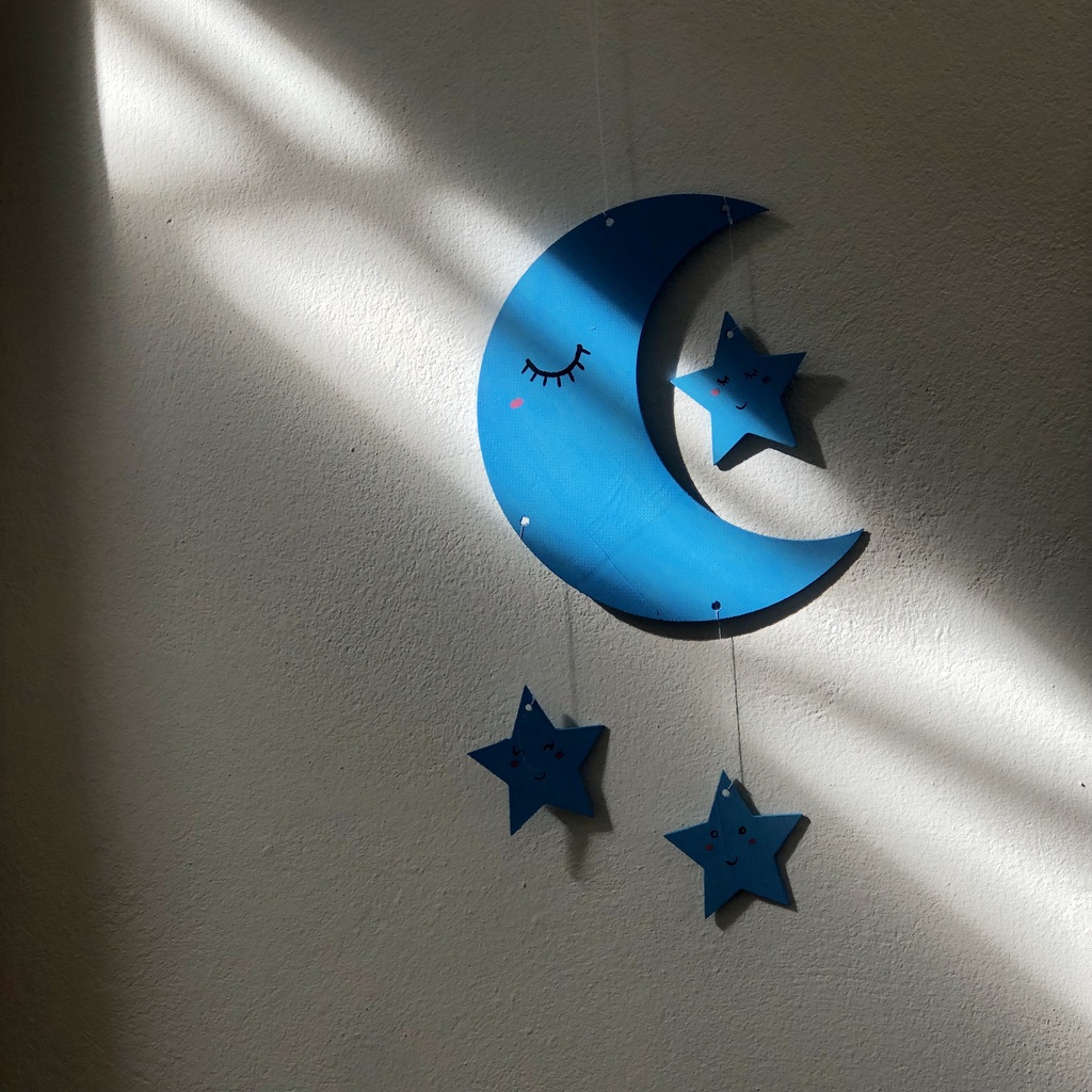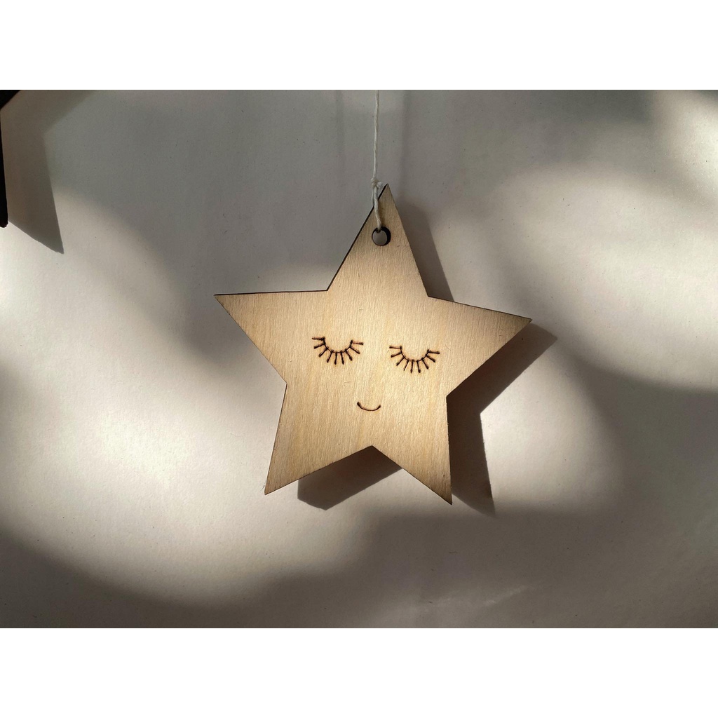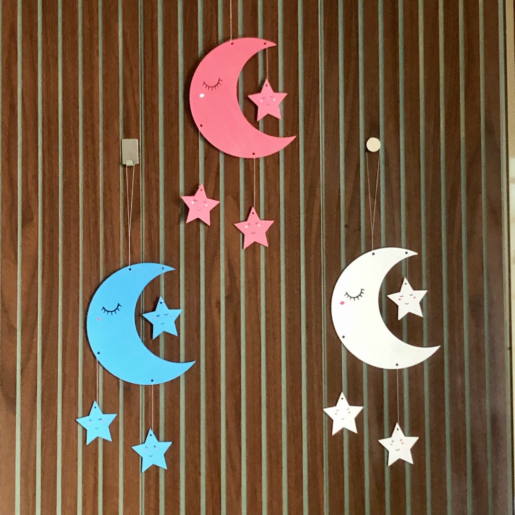 Set Trăng Sao Ngủ Bằng Gỗ Trang Trí Phòng Bé, Nhà Cửa, Treo Nôi Bé , Set Trăng Sao Treo Tường