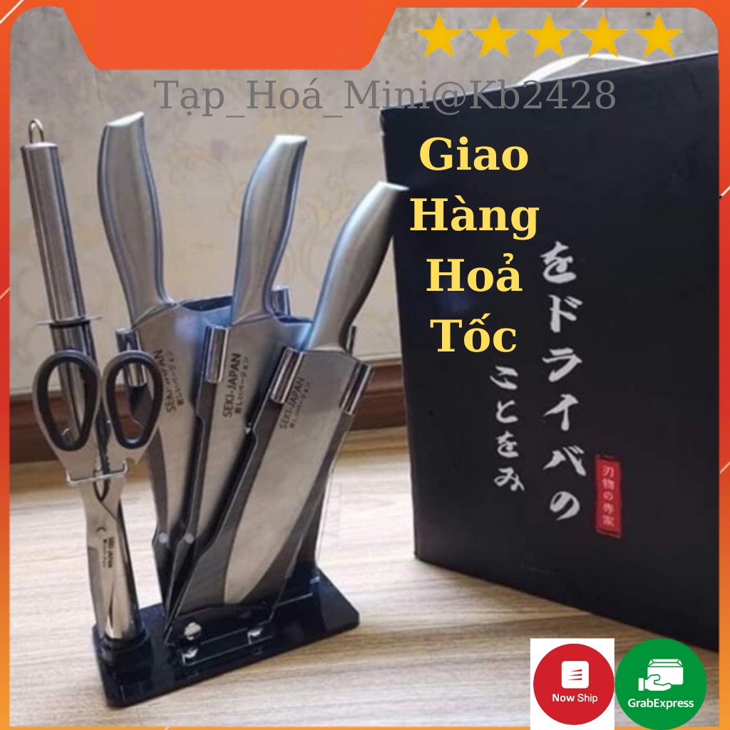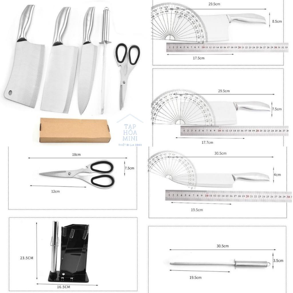 Bộ Dao Kéo Nhà Bếp 6 Món Nhật Bản Cao Cấp, Inox Không Gỉ, Có Kèm Đế Đựng - Hàng Loại 1