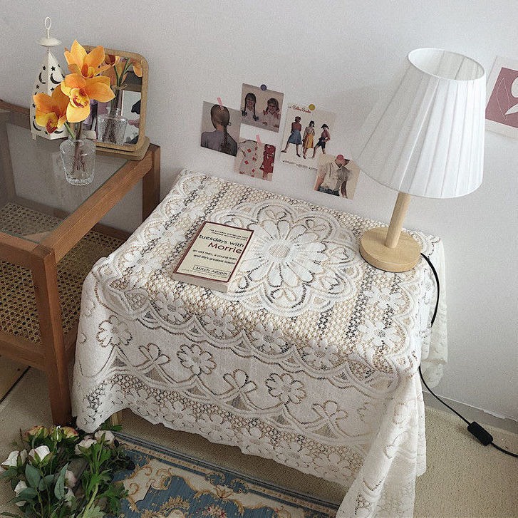 Khăn trải bàn hình chữ nhật ren trắng vintager, dùng cho bàn tròn và bàn vuông, nhiều size 60,90,120,90*160,140*200 cm