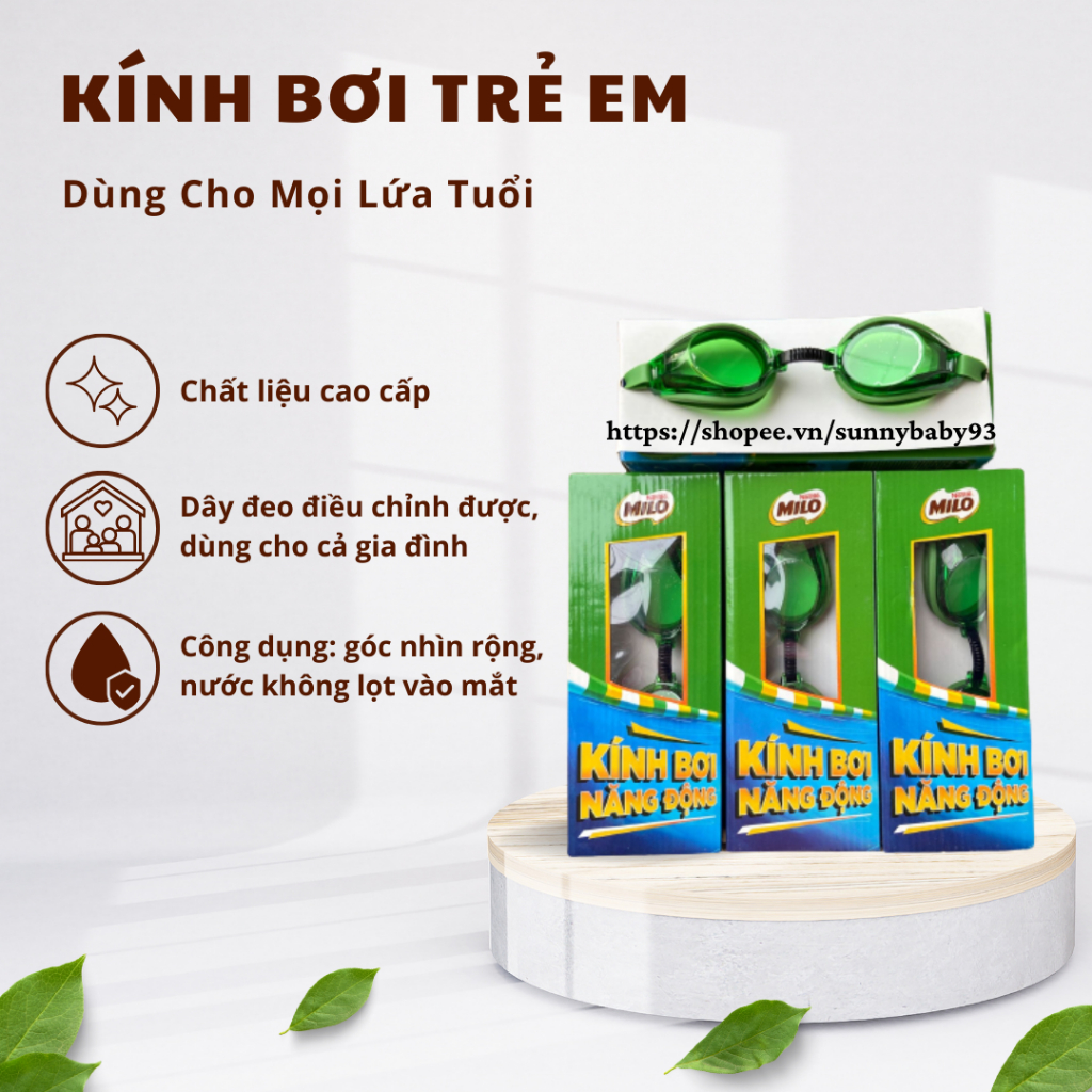 Kính bơi Cho Bé - Kính bơi Trẻ Em chính hãng Quà Tặng Milo - Chất liệu cao cấp an toàn cho trẻ