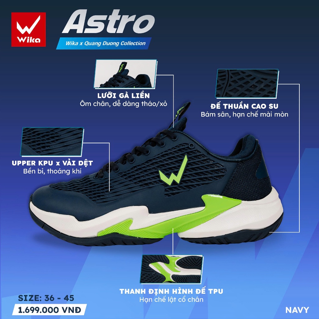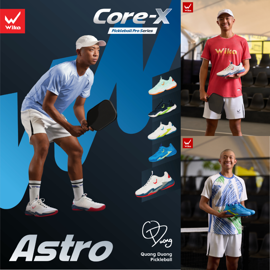 [CHÍNH HÃNG + KÈM 2 QUÀ] Giày Pickleball Wika Astro Quang Dương Cao Cấp, Upper KPU Lưỡi Gà Liền