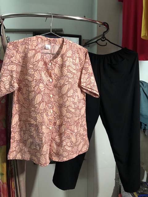 Áo bà ba bông Tay ngắn + quần siêu đen cho bà!!(ib chọn màu và size)