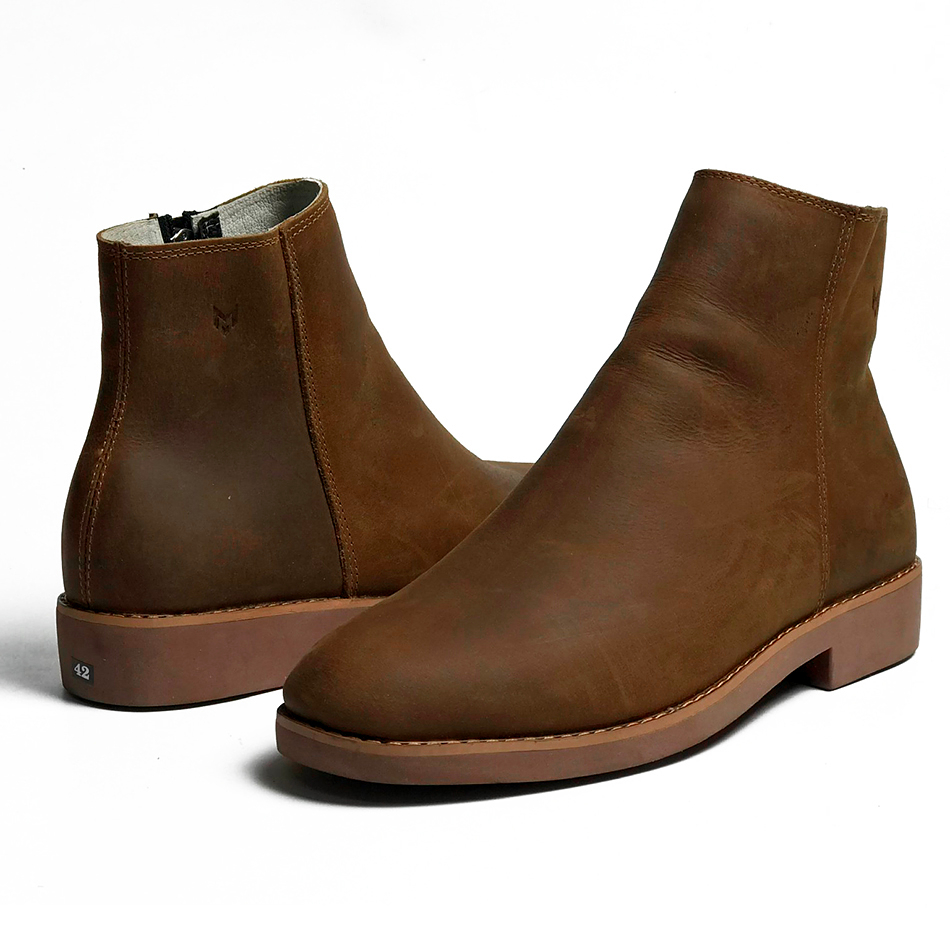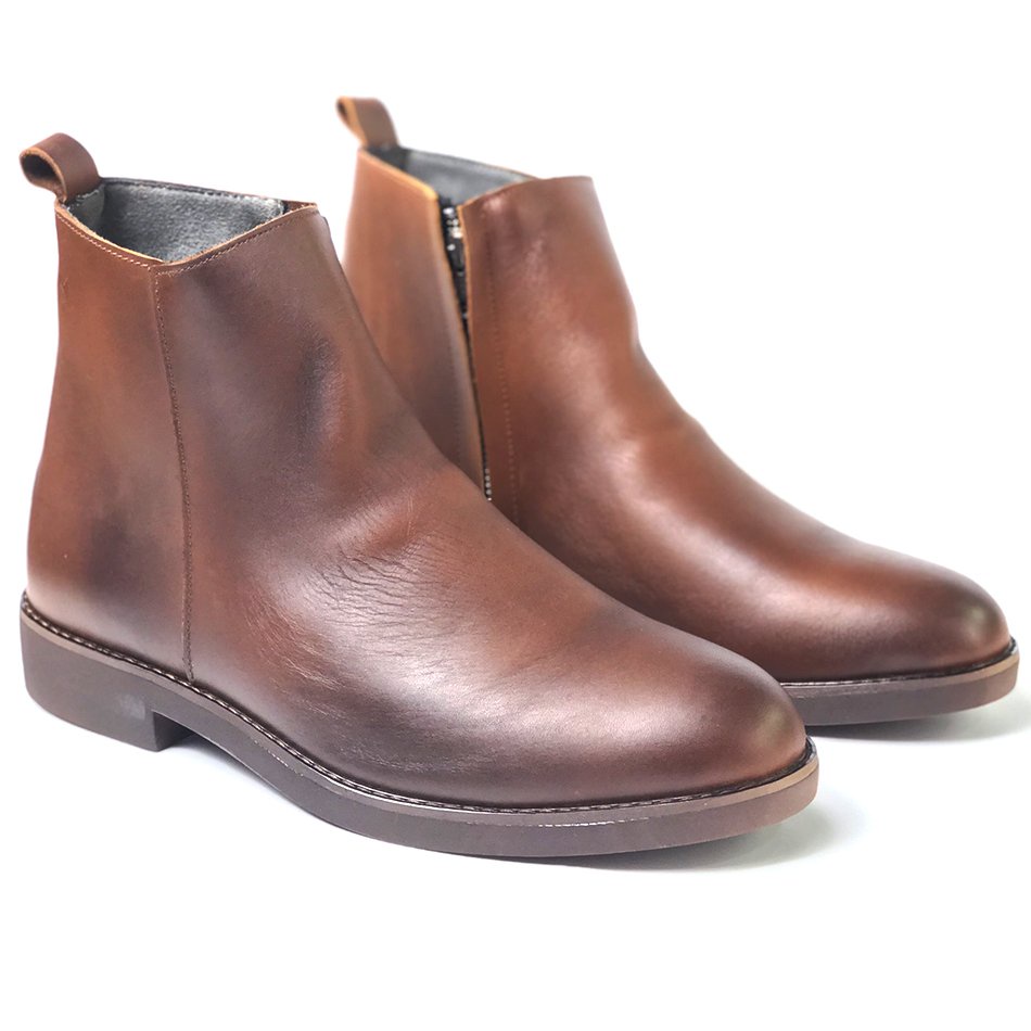 Giày công sở Chelsea Zip Boots MAD brown cao cổ nam da bò nhập khẩu cao cấp chính hãng giá rẻ tại hà nội