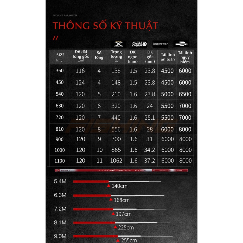 Cần câu Handing Shark 9m - Độ cứng 6H -Hàng Chính Hãng