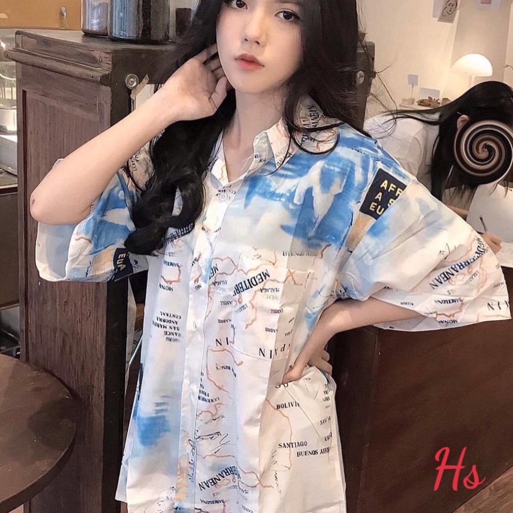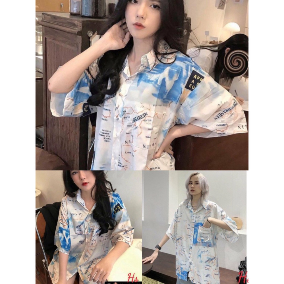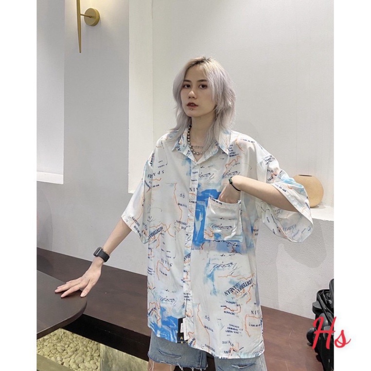 Áo Sơ Mi In Tên Nước Unisex ,Áo Somi Cộc Tay Nam Nữ Dáng Rộng F010