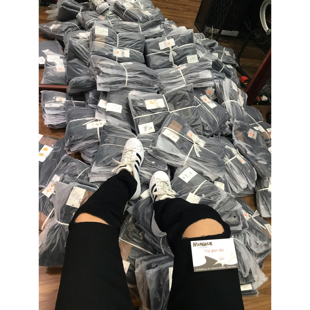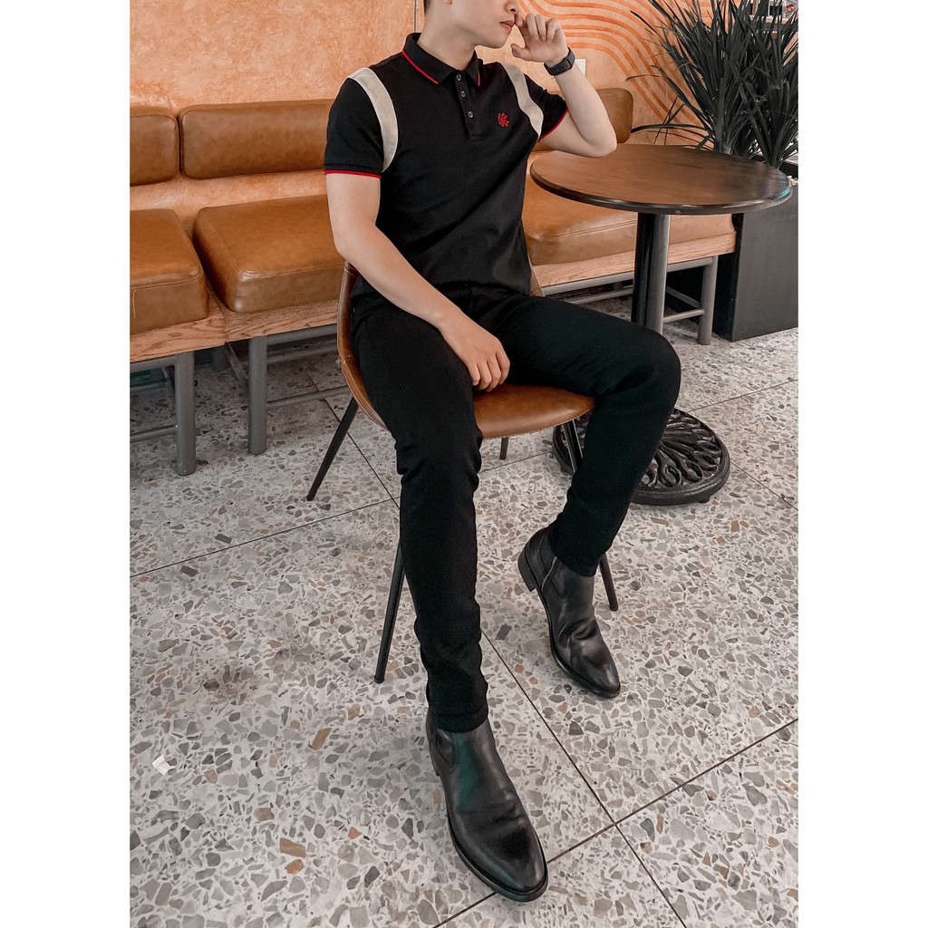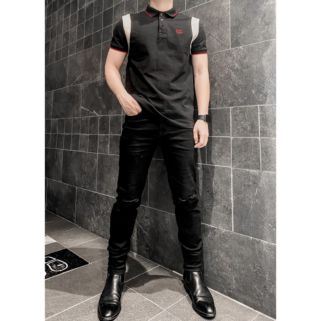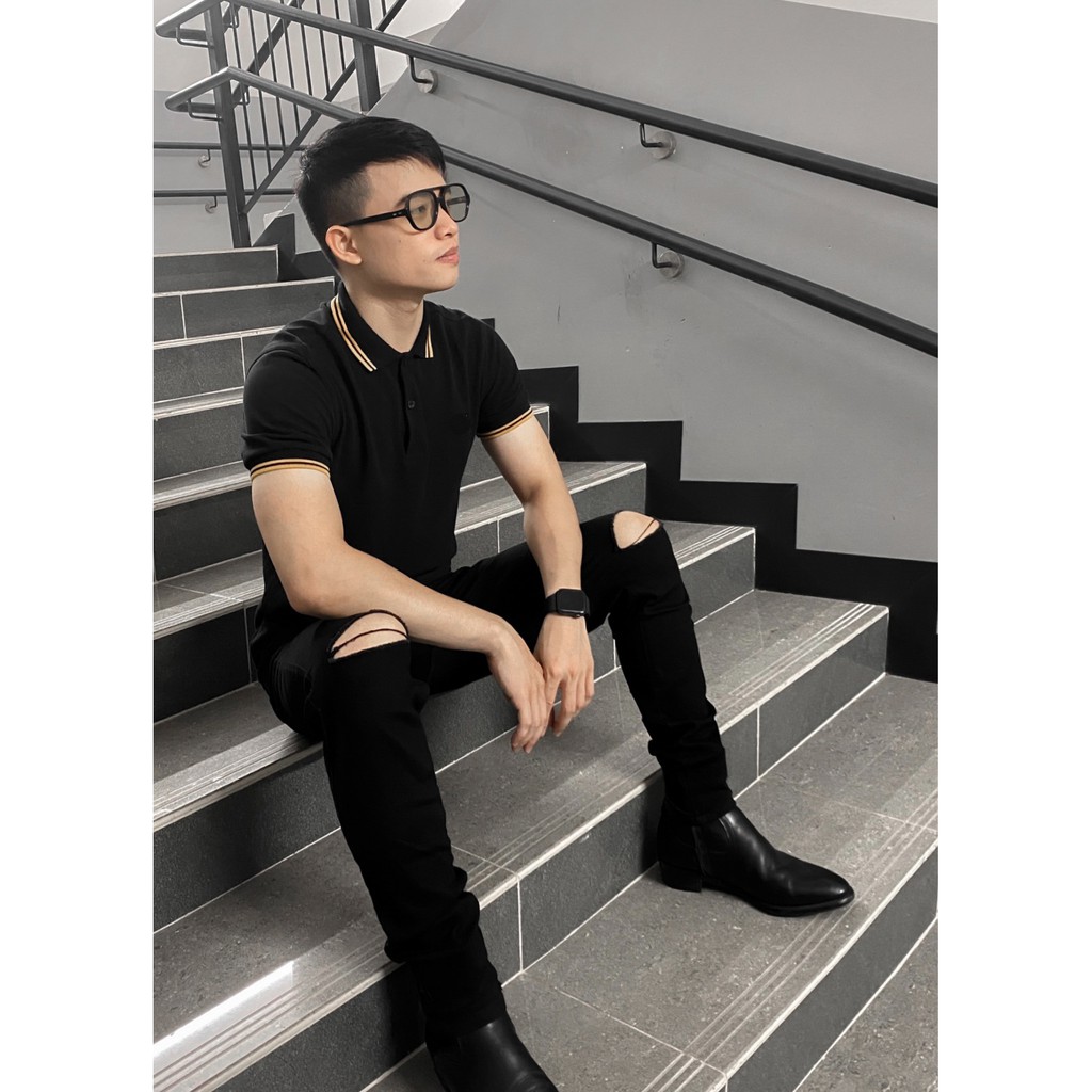 Quần jean nam đen trơn và rách vải jeans bò cotton co giãn - form ôm Munique