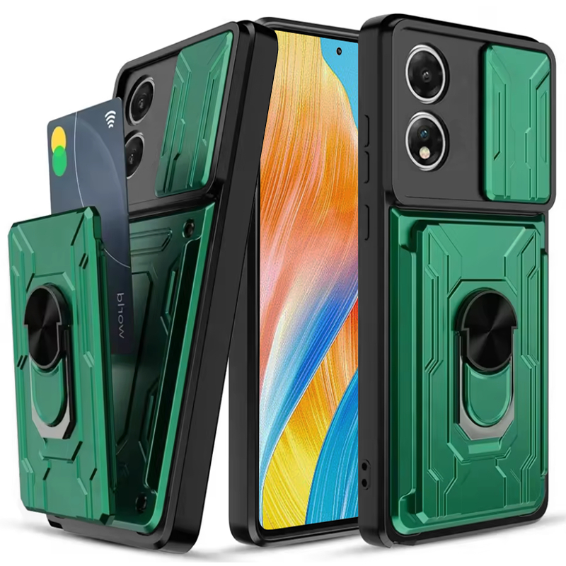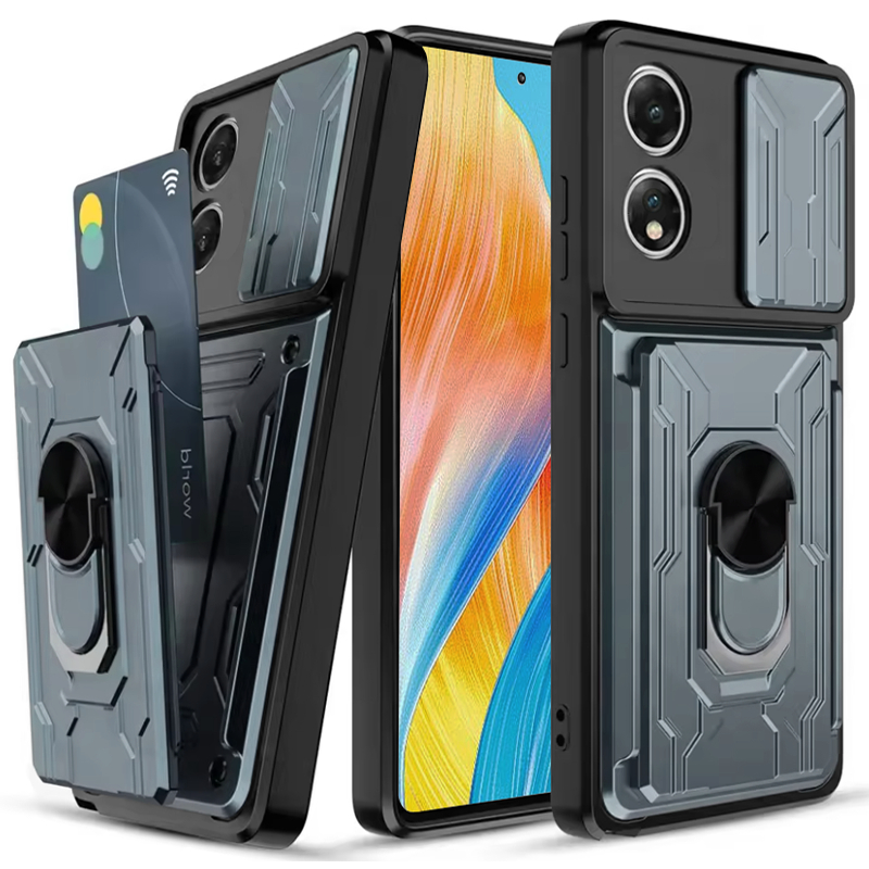 Chống sốc nặng trường hợp điện thoại cứng với chủ kim loại và khe cắm thẻ OPPO A6X A6 Pro A5X A5 Pro A3X A18 A38 A58 A60 A17 A98 A78 A57