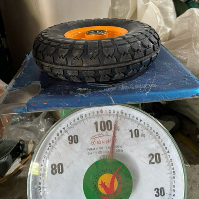 Bánh xe cao su đặc 25cm kèm trục phi 17.Bánh xe đẩy mâm vàng dày đường kính 25cm bi 6203