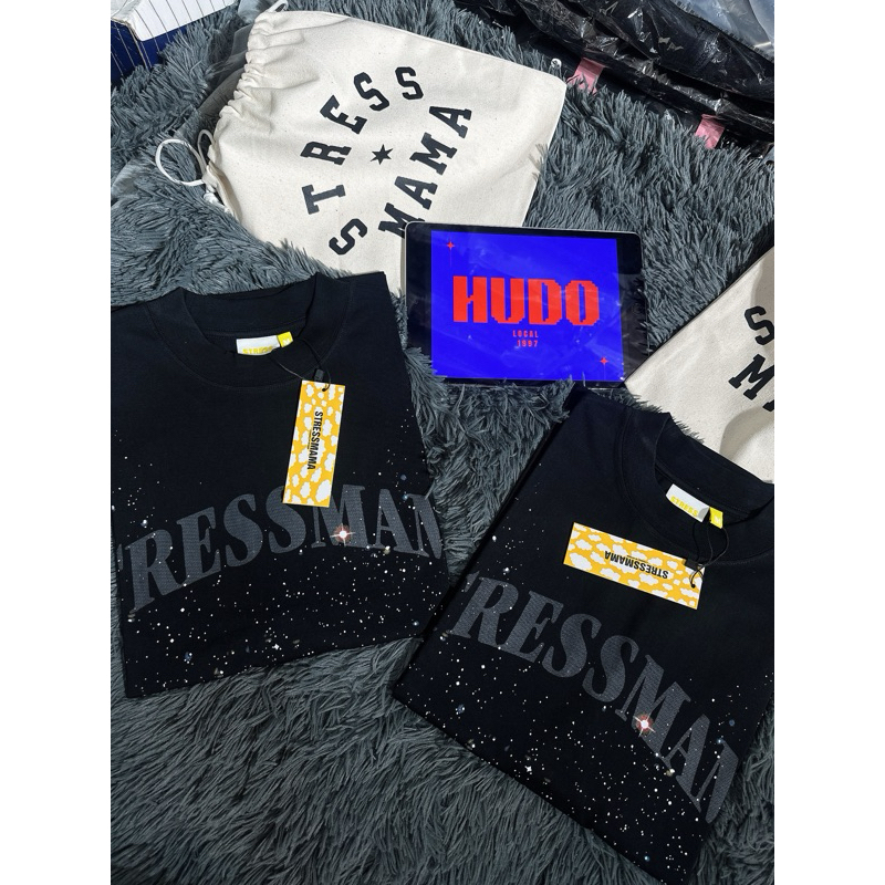 Áo thun STRESSMAMA UNIVERSE Black tee form boxy đầy đủ túi tag, Form boxy