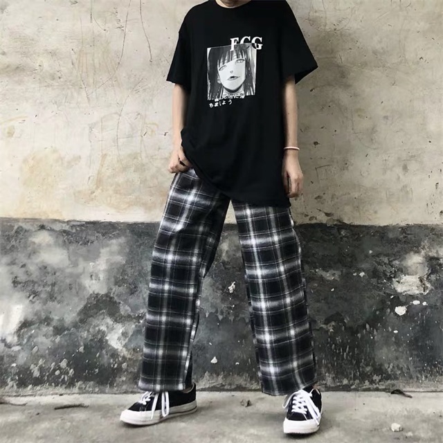Quần kẻ caro sọc đen - trắng
