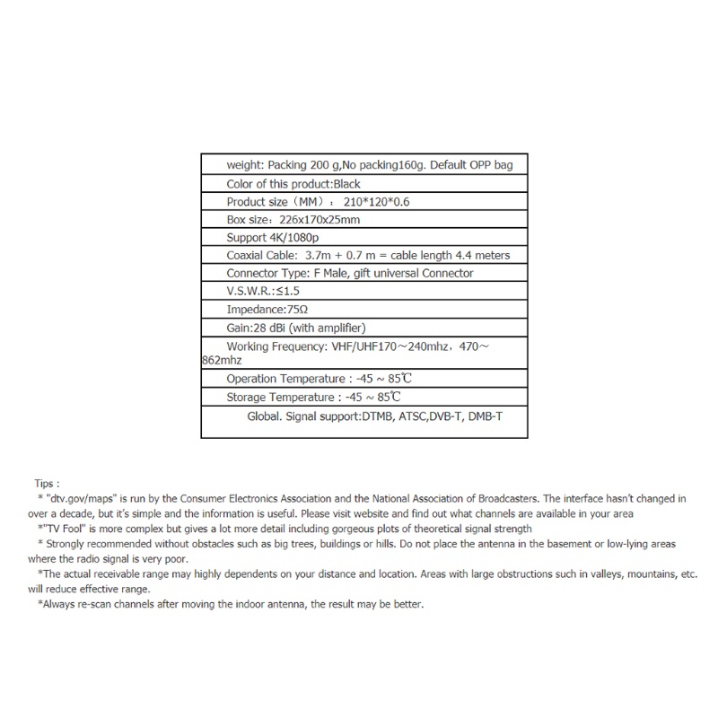 Ăng ten kỹ thuật số inter 4k 1080p cho tv thông minh với bộ khuếch đại tín hiệu tăng cường tnt antenna