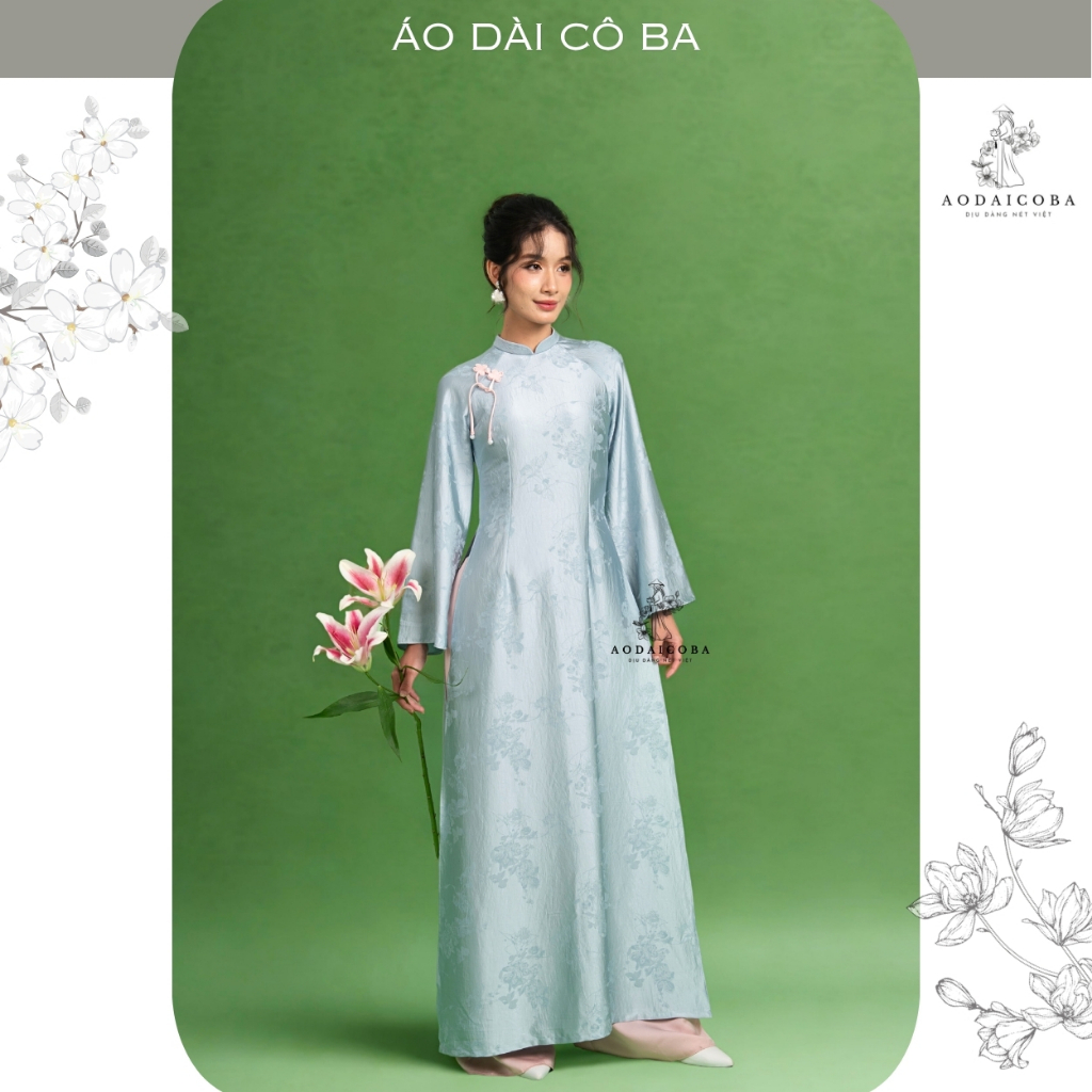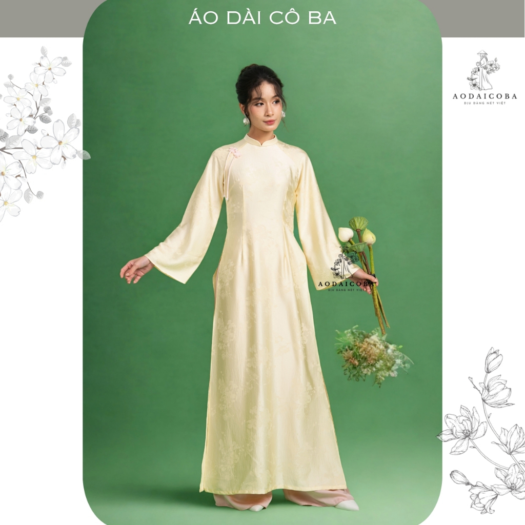 Áo Dài Thiên Điệp Form Truyền Thống Cách Điệu Tay Loe Dài, Đính Nơ Trẻ Trung Phù Hợp Mặc Lễ Tết, Sự Kiện,.- Áo Dài Cô Ba
