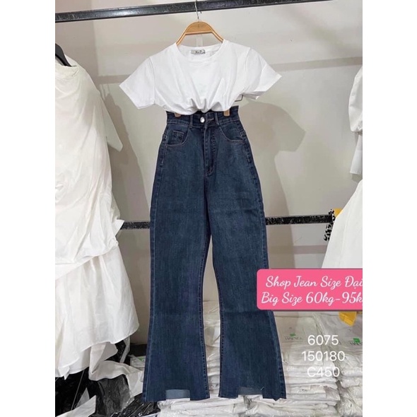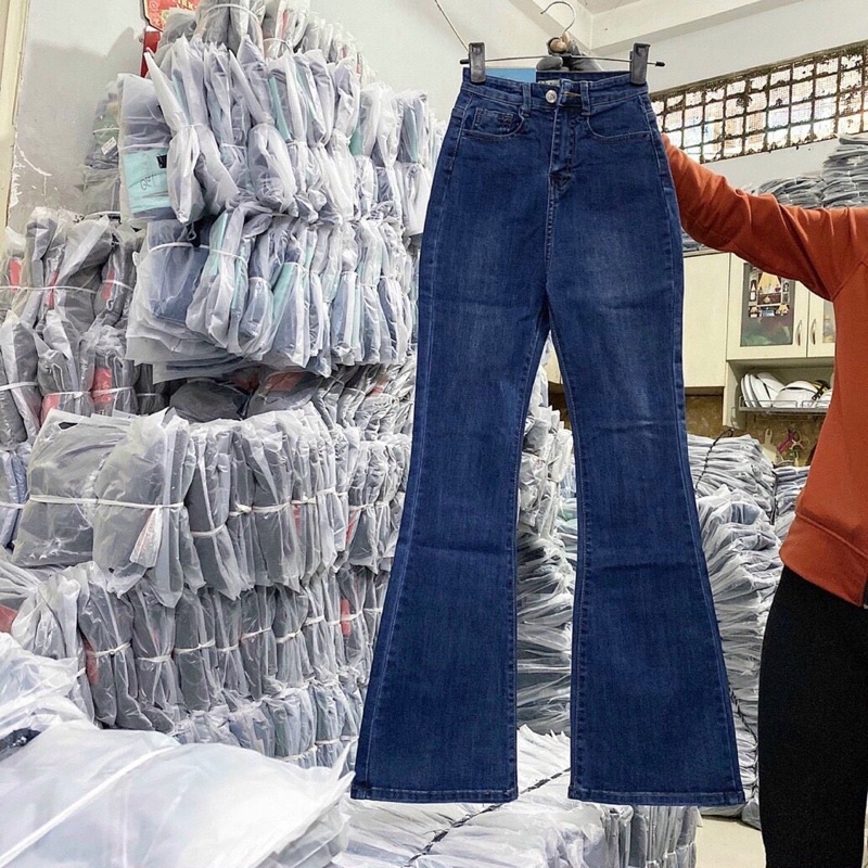 [Bigsize 60kg-97kg] Quần Jean Nữ Ống Loe Xanh Đậm Lưng Cao - Co Giãn