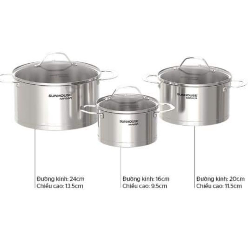 nồi lẻ inox 5 đáy bộ 502,888 side 16cm-20cm- 24cm