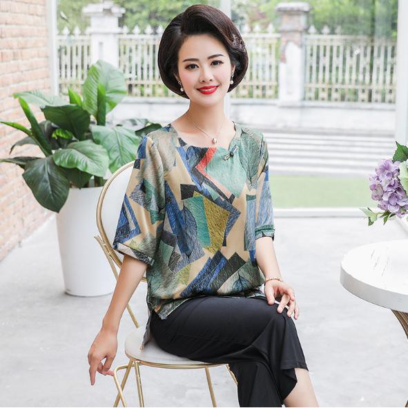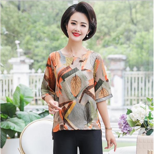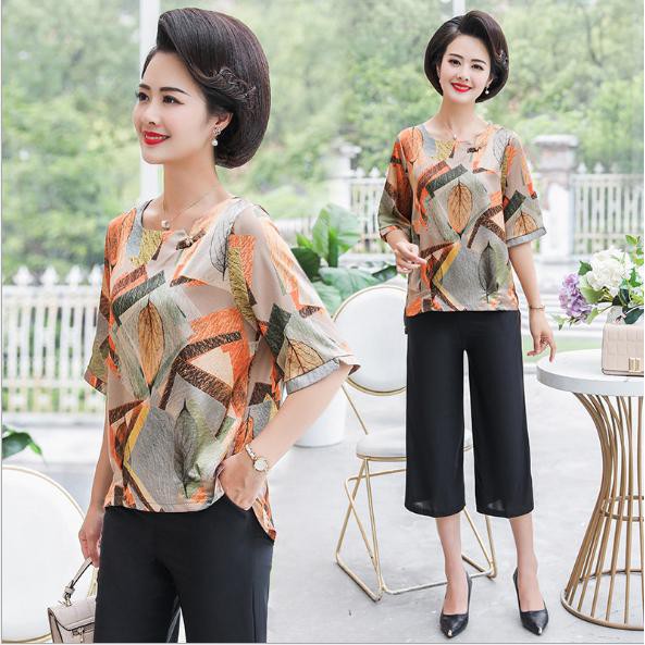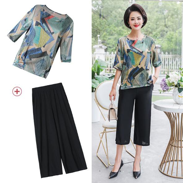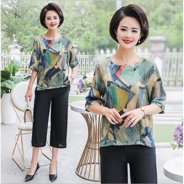 Bộ quần áo cho người trung niên / Set đồ lụa cho mẹ 50 tuổi