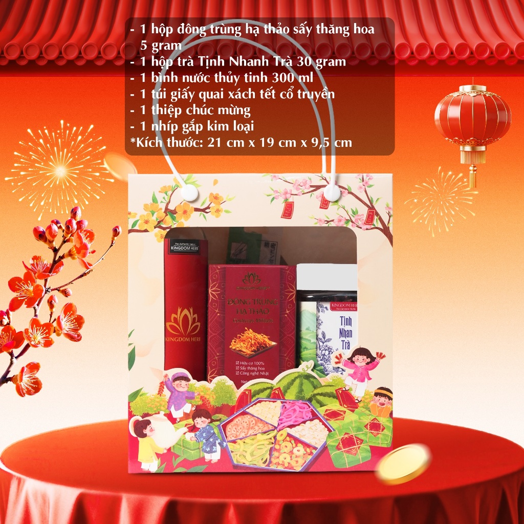 Set quà tặng sức khỏe, bộ quà đông trùng hạ thảo/táo đỏ/kỷ tử/trà cao cấp chính hãng Kingdom Herb