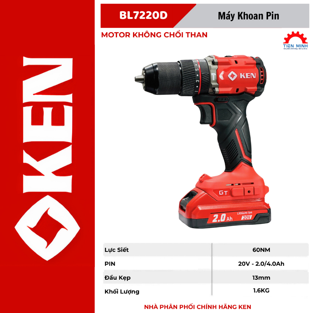 Máy Khoan Pin 3 Chức Năng 13mm 20v 2.0Ah KEN BL7220D - Model BL7220D