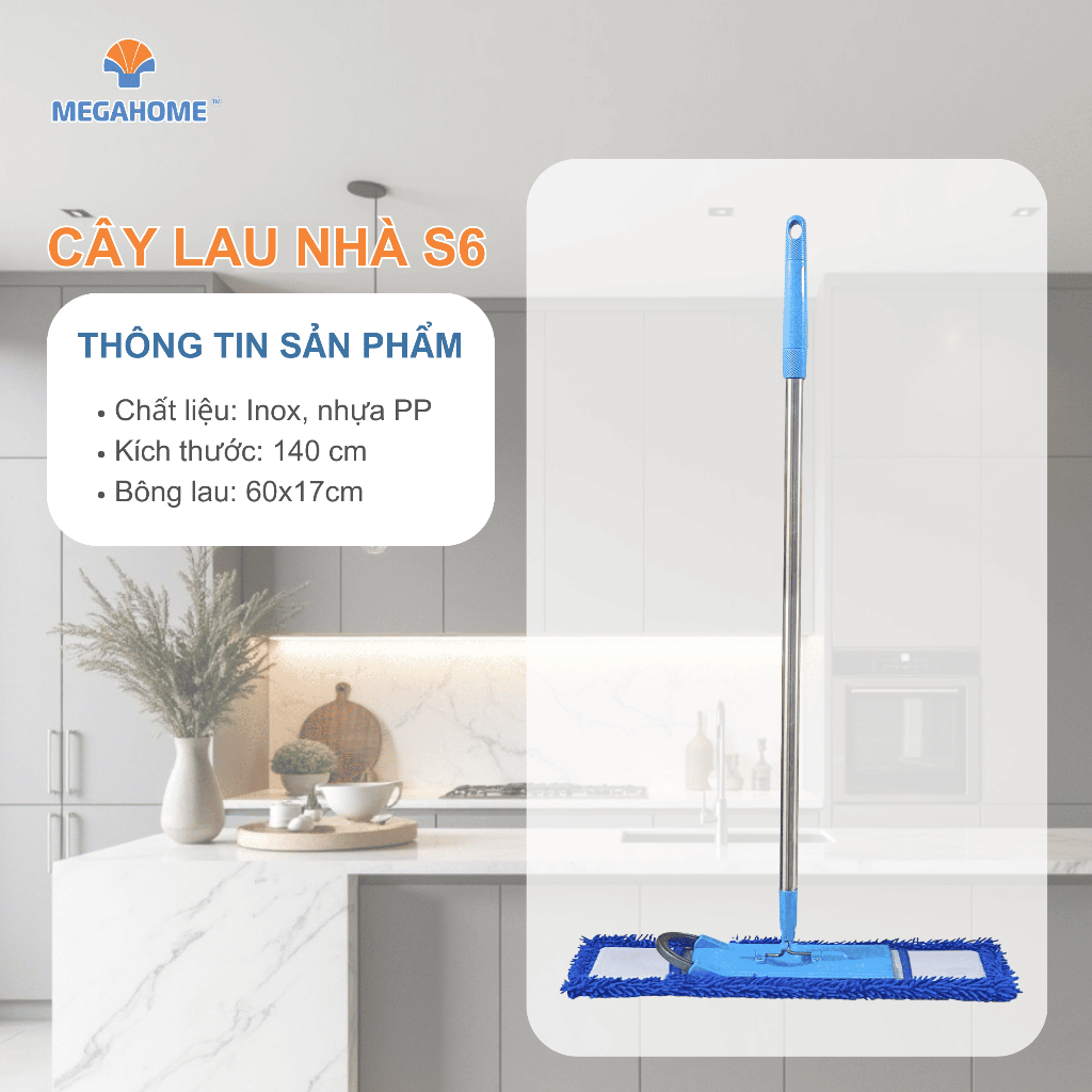 Cây lau nhà công nghiệp S6 (60x17cm), sử dụng cho nhà máy, xí nghiệp và hộ gia đình