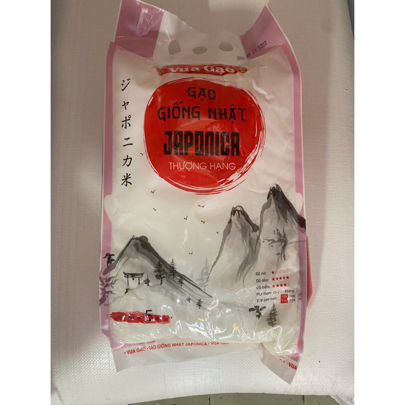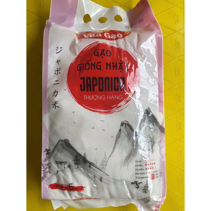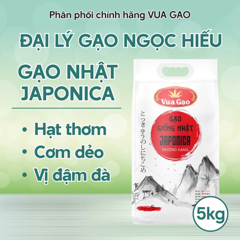 Gạo nhật Japonica Vua Gạo túi 5kg - Hạt gạo tròn, cơm mềm dẻo(Gạo chuyên làm cơm cuộn).