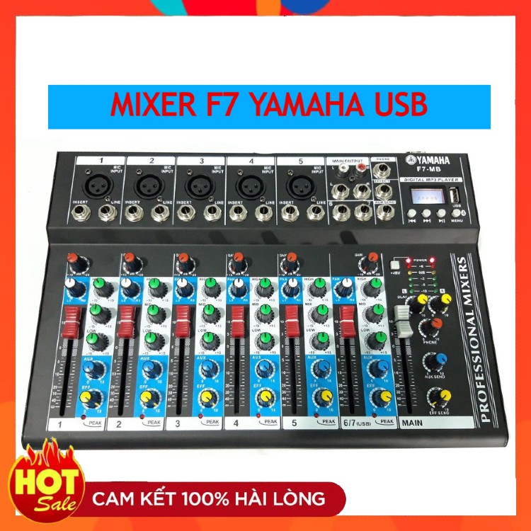 Mixer F7 YAMAHA USB . Tích Hợp Đèn LED Hiển Thị , Chất Âm Cực Hay , Tích Hợp 5 Cổng Cắm Mic . Bảo Hành 12 Tháng