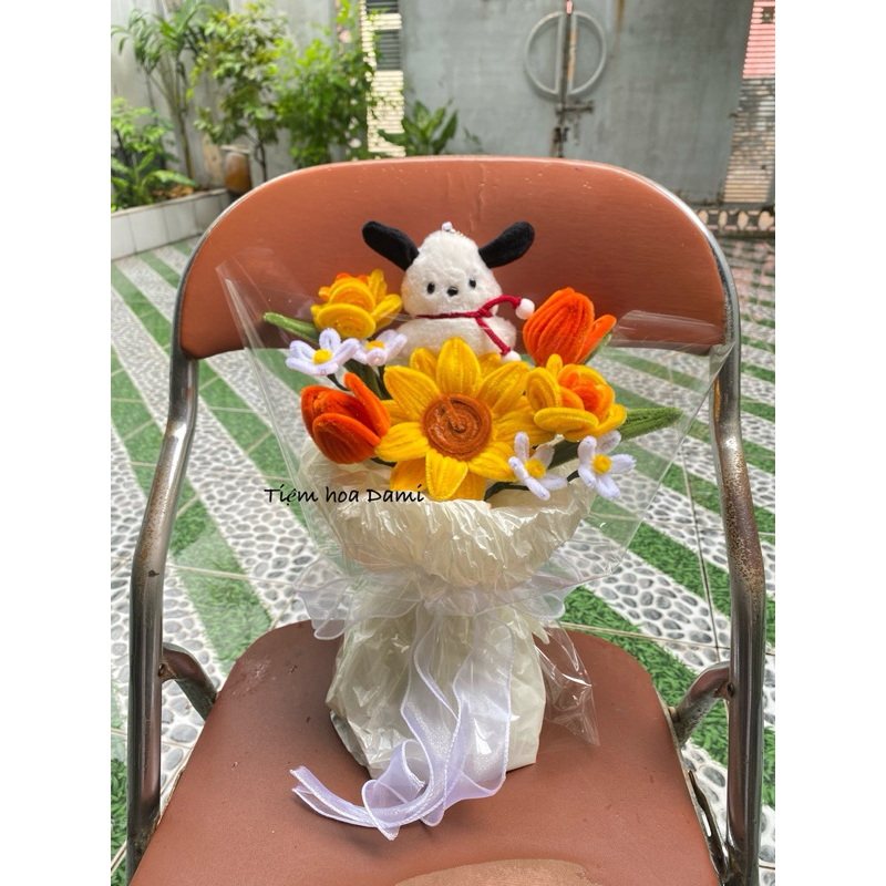 Gấu bông dễ thương, bó hoa hướng dương kẽm nhung