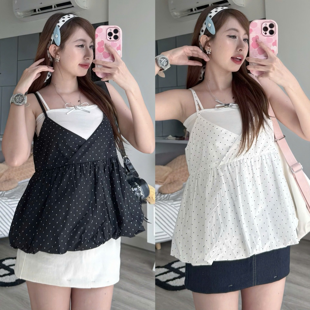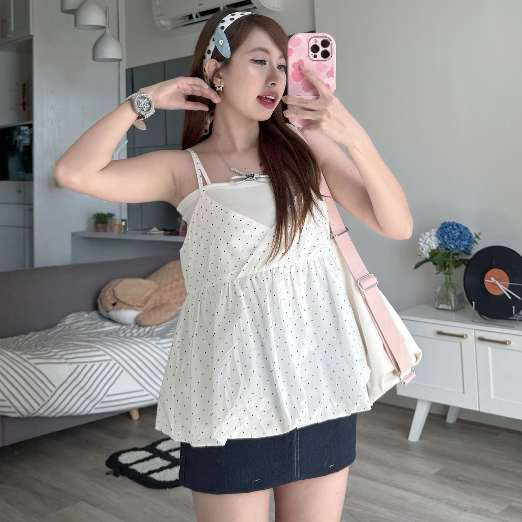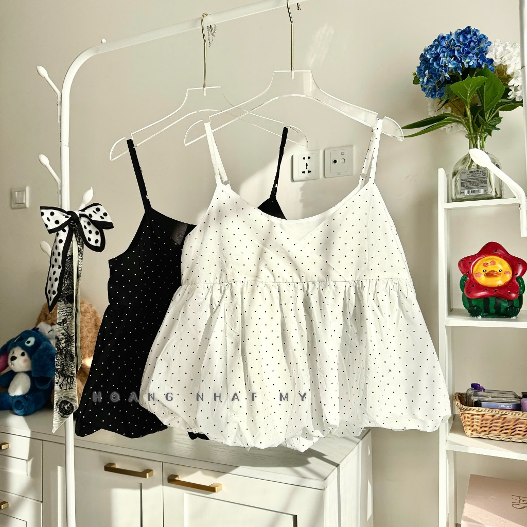 Áo Hai Dây Nữ (Vải QCCC) Họa Tiết Chấm Bi Chất Cotton Mềm Thoáng (AQc022)